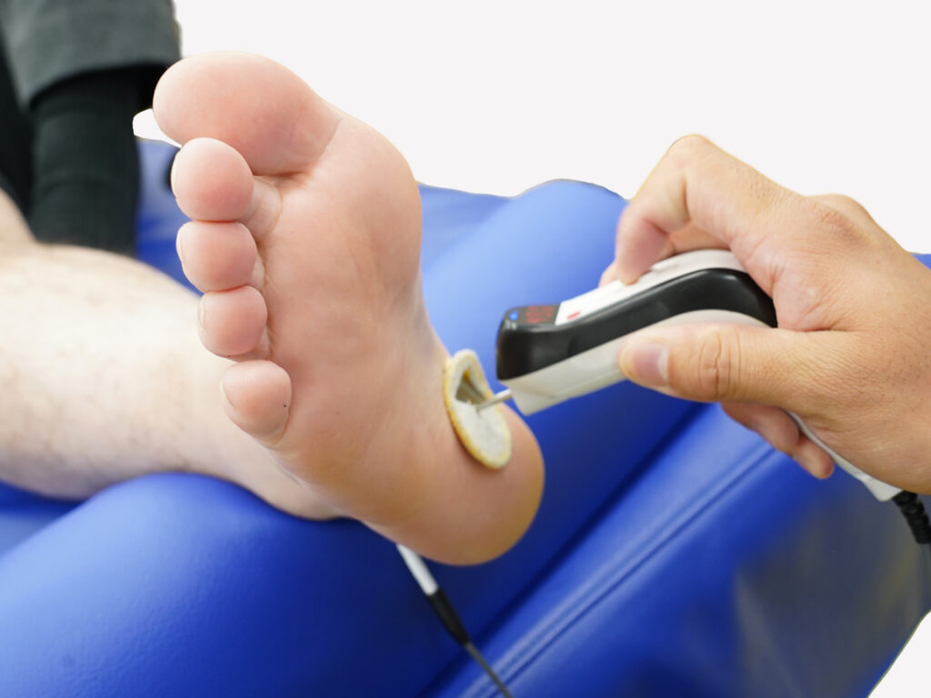 手技では届かない身体の奥深く(深層筋・神経)まで電気刺激を届ける「ハイボルト(高電圧電気刺激療法)」を使用します。