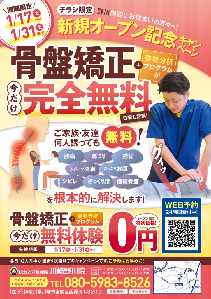 「ほねごり接骨院・はりきゅう院 川崎野川院」 が新しくオープンいたします。