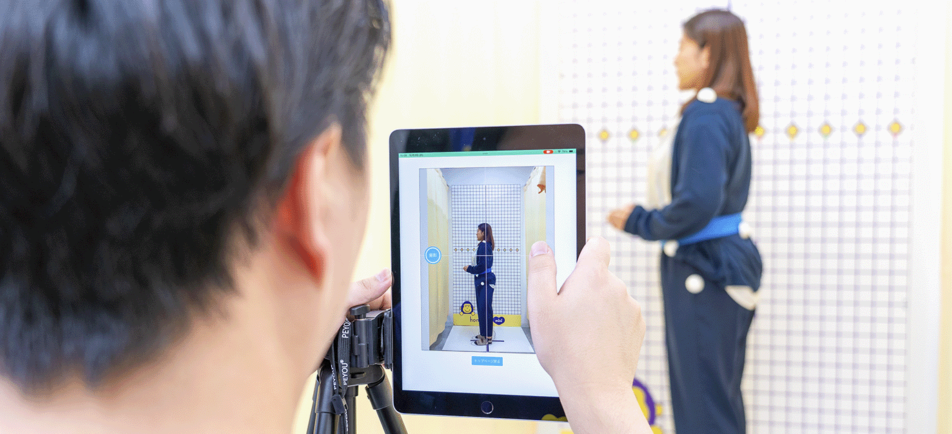 施術前に姿勢のチェックを行います。今の姿勢を見てもらうことにより、患者さんの姿勢の歪みのある部分を確認します。ビフォーアフターでもチェックするため、良い姿勢が当たり前になることを目指します。
